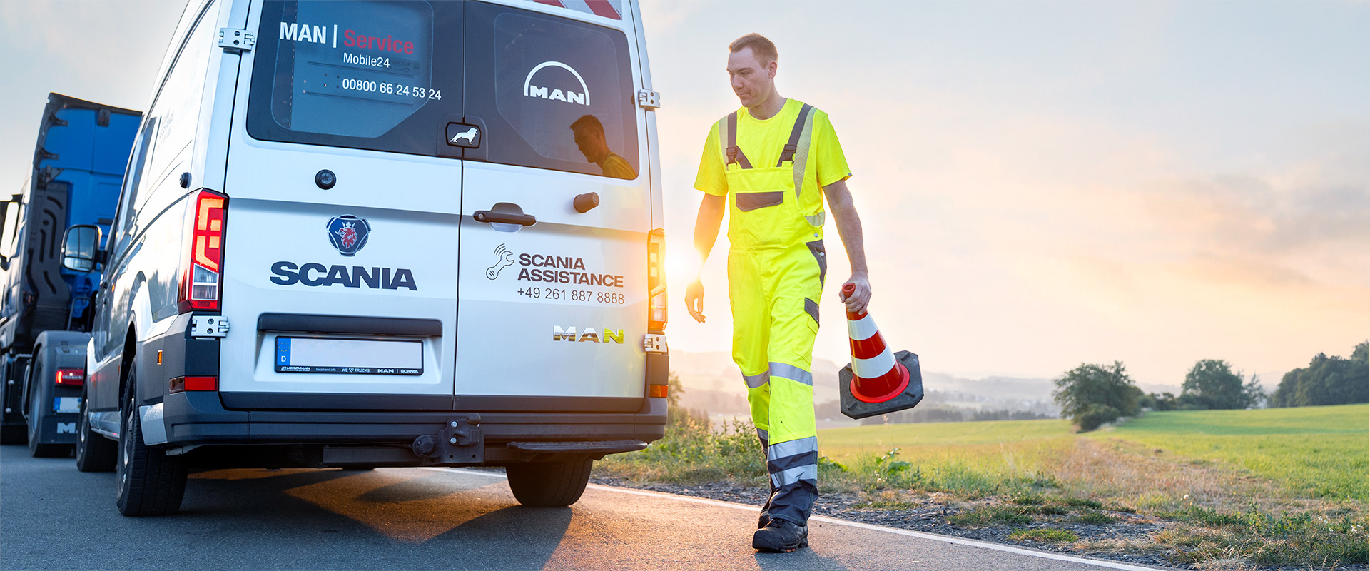 Unsere Servicetechniker sind 24/7 im Einsatz und stehen zur Seite wenn das Fahrzeug streikt. Den passenden LKW-Notdienst erhalten Sie über die Anmeldung bei MAN Service Mobile24 oder der SCANIA Assistance. Rund um die Uhr steht Ihnen durch uns fachkundige Unterstützung zur Seite, wenn sich Ihr Pannenort in unserem Einzugsgebiet befindet. Der 24h-Notruf, 365 Tage im Jahr, sorgt dafür, dass technische Probleme, Ausfälle oder Reifenschäden zeitnah bewertet, behoben und passende Maßnahmen eingeleitet werden. So bleibt Ihre Flotte auch im Störungsfall bestmöglich abgesichert.